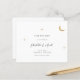 Um convite de casamento celestial moderno minimalista apresenta uma design simples e elegante. Inclui uma lua de folha de ouro e estrelas que brilham suavemente, colocadas sobre um fundo limpo. O convite usa a tipografia serif clássica, que adiciona um toque tradicional e formal com seu estilo limpo e limpo.