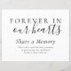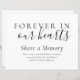 Convide os hóspedes a aceitarem um cartão e a deixarem palavras de amor ou memórias especiais com este sinal Compartilhar uma mesa de Memória. A fotografia do modelo é para fins ilustrativos e pode ser mudada para uma de vocês. **POR FAVOR LEIA ANTES DE COMPRAR** O nosso grande orçamento de papelaria mede 5,5"x8,5". O estoque de cartão é branco brilhante, com acabamento semirbrilhante e um peso de 110 lbs, adequado para convites. NÃO aconselhamos você a escolher a opção de papel mate ou satin, pois é um papel de 80 lb muito mais fino, que é mais parecido com as páginas de revistas do que com o cartolin. Se você fizer alterações na forma ou no tamanho ou escolher outro produto e o design for cortado de alguma forma ou não parecer direito na página, você precisará usar o Serviço de Design ao Vivo para que alguém ajuste o layout para você, a menos que você se sinta confortável fazendo isso sozinho. Não há nenhuma verificação manual ou intervenção entre a colocação do pedido e a impressão, portanto o que você vê na tela é o que será impresso e enviado a você. Com isso em mente, por favor, verifique também triplamente se há erros de ortografia ou informações incorretas antes de fazer seu pedido. As fotografias do modelo são para fins ilustrativos e podem ser mudadas para uma de vocês.
