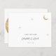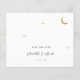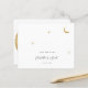 Um convite de casamento celestial moderno minimalista apresenta uma design simples e elegante. Inclui uma lua de folha de ouro e estrelas que brilham suavemente, colocadas sobre um fundo limpo. O convite usa a tipografia serif clássica, que adiciona um toque tradicional e formal com seu estilo limpo e limpo.