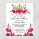 Convidado Dourado Floral Tiara Quinceanera, Glam Rosa Elegante