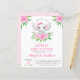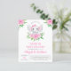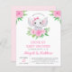 Personalize esta Unidade de Bebê Elefante Girly Elephant Por Chá de fraldas ou Baby Sprinkle em fundo branco com sua mensagem e detalhes. Este convite chico inclui flores cor-de-rosa pinceladas e um verde botânico moderno com tipografia fofa e elegante para a celebração especial da Mãe a Ser.