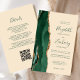 The left-hand edge of this elegant modern wedding invitation features an emerald green watercolor agate border trimmed with faux gold glitter. The customizable text combines green handwriting, copperplate and italic fonts on a champagne beige background. Add additional details on the back, along with a QR code to help your guests visit your wedding website.