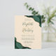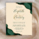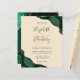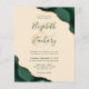 An emerald green watercolor agate design trimmed with faux gold glitter appears in two corners of this elegant design. Personalize it with the couple's names in green handwriting script over a large beige ampersand. Add the wedding details in green copperplate and italic fonts on a champagne beige background. The reverse side features a matching green and gold agate design.
