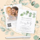 Um valor para o alternativo do ORÇAMENTO em tamanho menor de 4,5 x 5,6" de semirbrilho de 110 lbs, que é de espessura semelhante a um cartão postal (no entanto, não é adequado para uso como cartão postal). POR FAVOR, NOTE que existe UM por folha. CONVITE DE FESTAS de Casamento de Código QR de Código QR do Script Eucalyptus BUDGET. Um script de estilo de escrita manual definido para o Partido da Noite e o resto do texto que você pode personalizar facilmente. Um galho elegante de verde-aquarela com uma dica de folhas de ouro eucalipto passa pelo canto superior direito para uma sensação contemporânea. Adicione sua foto favorita de vocês dois atrás simplesmente substituindo a imagem de exemplo. Para a conveniência de seus convidados responderem, adicione seu código QR à sua página de resposta no seu site de casamento no verso substituindo o código QR na amostra. Você pode criar códigos QR gratuitamente on-line. Basta pesquisar "Criador de código QR" e muitas opções surgem para criar gratuitamente.