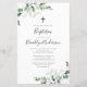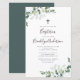 Um convite moderno ao eucalipto verde ao batismo. **POR FAVOR LEIA ANTES DE COMPRAR** Nossa papelaria de orçamento Grande mede 5,5"x8,5" e ajustado envelope A5, que estão disponíveis em todos os tipos de cores em sua loja de papelaria local. O estoque de cartão é branco brilhante, com acabamento semirbrilhante e um peso de 110 lbs, adequado para convites. NÃO aconselhamos você a escolher a opção de papel mate ou satin, pois é um papel de 80 lb muito mais fino, que é mais parecido com as páginas de revistas do que com o cartolin. Se preferir um convite clássico de tamanho 5x7 impresso no estoque de cartão de 120lb com um acabamento mate, você pode transferir este design para uma placa plana usando as opções de design de transferência. As placas planas não estão na faixa de orçamento, mas você tem uma variedade maior de tamanhos e opções de estoque de cartão e elas são enviadas com envelopes. Se você fizer alterações na forma ou no tamanho ou escolher outro produto e o design for cortado de alguma forma ou não parecer direito na página, você precisará usar o Serviço de Design ao Vivo para que alguém ajuste o layout para você, a menos que você se sinta confortável fazendo isso sozinho. Não há nenhuma verificação manual ou intervenção entre a colocação do pedido e a impressão, portanto o que você vê na tela é o que será impresso e enviado a você. Com isso em mente, por favor, verifique também triplamente se há erros de ortografia ou informações incorretas antes de fazer seu pedido.