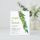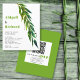 ramificação BUDGET eucalyptus com folhas e código QR para RSVP em convite de casamento de tons verdes. Um design para o seu casamento com um galho em cascata de folhas de eucalipto. A parte traseira é de cor verde e inclui o código QR para que seus convidados digitalizem e respondam.