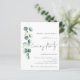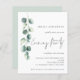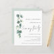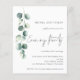 Budget Sage Eucalyptus Wedding Evening Party Invitation. A value for money BUDGET alternative on a smaller size 4.5 x 5.6” semi-gloss 110lbs weight, which is of similar thickness to a postcard (however is not suitable to use as a postcard.). PLEASE NOTE there is ONE invite per sheet. A Minimalist botanical style to invite your evening wedding guests. A set handwritten script for Evening Party and the rest of the text you can easily personalize. An elegant branch of watercolor eucalyptus leaves runs down the left hand side.