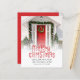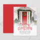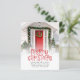 BUDGET Feliz Natal Novo Cartão de Natal Para Revistas Fotográficas Domésticas. Um preço orçamentário de cartão chato de 4,5" x 5,6" de 110 lb de formato simples para as suas saudações festivas em um estoque de cartão SEMI GLOSS de 110 lb (semelhante à espessura de um cartão postal). Basta substituir a foto de exemplo por sua e personalizar com sua saudação, seu nome e seu novo endereço na parte inferior. Feliz Natal está em uma tipografia definida decorada com renas bonitas. Você pode alterar as cores de qualquer texto se quiser combinar melhor sua foto através da opção editar mais, bem como alterar a cor vermelha do plano de fundo no verso.
