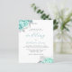 Budget Floral Aqua Silver QR Code Wedding Invite