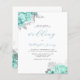 Budget Floral Aqua Silver Script Wedding Invite