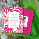 Este belo BUDGET magenta, rosa-magenta e monstera tropical-dourada, e o convite para casamento das folhas de palma, certamente impressiona os vossos convidados! O convite para na moda apresenta um padrão de folhas tropicais em cor-de-rosa magenta fuchsia, com contorno de ouro e letras em branco, permitindo que seu texto se destaque. O verso do convite inclui um padrão de bolinhas dourada sobre um fundo magenta e um código QR para os convidados usarem para facilmente RSVP on-line. Com este convite, você pode definir o tom para seu dia especial e garantir que seus convidados possam facilmente RSVP.