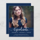 Anúncio de Foto de Script de Graduação Elegante Moderno BUDGET Cartão postal com um script manuscrito da palavra "Formando" em branco sobre um fundo azul clássico de marinho. Adicione facilmente sua própria foto e detalhes para o anúncio perfeito da graduação. Excelente para festas de formando, convites para abrir a casa, ou apenas uma maneira de mostrar o seu formando! **O nosso documento sobre o ORÇAMENTO é mais pequeno e delicado, mas ainda é bonito!** Se precisar de assistência ou de elementos correspondentes, contacte-nos em cedarandstring@gmail.com.