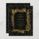 BUDGET Gold pine frame with cone confetti black winter Christmas wedding Invitation. A lovely winter wedding design that includes a gold pine frame with cone and needles and gold confetti borders on black background. The back is covered with a gold confetti pattern.
