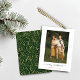 Cartão de Férias de Natal de Dourado Sábio Moderno e Verde, Bastante Feliz, com fotos favoritas e um roteiro simples, mas elegante, saudação de Feliz Natal. O dorso é enfeitado com um padrão festivo, mas elegante, de folhas do estilo folha de ouro, pinheiro, e outro verde botânico de inverno em um fundo verde da floresta de inverno. Perfeito para seus cartões de natal este ano! **O nosso documento sobre o ORÇAMENTO é menor, mais leve e mais delicado, mas ainda é bonito! Não se esqueça dos envelopes!** Se você precisar de ajuda ou itens correspondentes, entre em contato conosco em cedarandstring@gmail.com.
