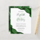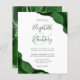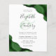 A hunter green watercolor agate design trimmed with faux silver glitter appears in two corners of this elegant design. Personalize it with the couple's names in charcoal gray handwriting script over a large green ampersand. Add the wedding details in charcoal gray copperplate and italic fonts on a white background. The reverse side features a matching green and silver agate design.