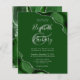A hunter green watercolor agate design trimmed with faux silver glitter appears in two corners of this elegant design. Personalize it with the couple's names in silver gray handwriting script over a large green ampersand. Add the wedding details in silver gray copperplate and italic fonts on a green background. The reverse side features a matching green and silver agate design.