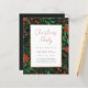 Convide convidados para a sua festa de Natal economicamente com o nosso Convite de festas de Natal do Orçamento. O pano de fundo da folhagem de inverno, bagas ocas e uma falsa borda de ouro criam uma atmosfera festiva. "Festa de Natal" em escrita à mão e tipografia elegante apresentam seus detalhes do partido de forma atrativa.