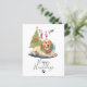 BUDGET Happy Howlidays Yellow Labrador Dog Cartão plano de Natal de Ricaso - apresentando um adorável labrador deitado numa cama macia em frente a uma árvore de Natal e meias e com uma coroa de férias com um arco vermelho no pescoço