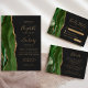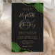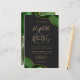 A hunter green watercolor agate design trimmed with faux gold glitter appears in two corners of this elegant design. Personalize it with the couple's names in gold-colored handwriting script over a large gray ampersand. Add the wedding details in gold-colored copperplate and italic fonts on a slate black background. The reverse side features a matching green and gold agate design.