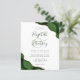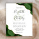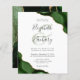 A hunter green watercolor agate design trimmed with faux gold glitter appears in two corners of this elegant design. Personalize it with the couple's names in charcoal gray handwriting script over a large green ampersand. Add the wedding details in copperplate and italic fonts on a white background. The reverse side features a matching green and gold agate design.