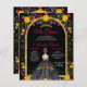 Arca elegante de ouro com vestido de princesa floral para o Convite Quinceanera de Aniversário de 15.