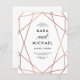 Este convite de casamento moderno apresenta um falho ouro rosa, design geométrico num fundo branco na moda.