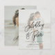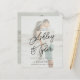 Simple elegant timeless cheap budget affordable beach tropical summer destination minimalist modern photo overlay wedding invitation with whimsical names script and wedding logo monogram.