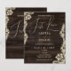 Rustic Budget Nothing Fancy Just Love Wedding Invitation. Embrace a charmingly rustic yet elegant theme for your special day with this "Nothing Fancy, Just Love" wedding invitation. The design features a rich, dark wood grain background complemented by delicate, vintage-inspired lace accents along the edges. "Just Love" is written in elegant script calligraphy, setting a warm and intimate tone. This invitation perfectly blends rustic simplicity with sophisticated details, making it ideal for a couple who values heartfelt connection over elaborate fuss. Announce your upcoming marriage with a style that speaks of genuine affection and rustic beauty.
