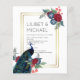 Belo Pavão com Teal e azul, flores burguentas, folhas verdes sagazes aparecem no outono, outono, itens de casamento no inverno. Parte de uma coleção maior que inclui convites para casamento de orçamento, salvar as datas, RSVPs, obrigado de cartões com fotos, presentes de noiva e festa de casamento e muito mais. Para obter um planejamento GRATUITO detalhado do casamento no inverno, visite weddingdesignchic.com.