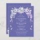 BUDGET White floral em cascata de terras arborizadas em cascata azul. Convite para casamento azul. Uma bela garland branca em cascata adorava este convite de casamento com o confete de ouro.