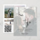 Elegant trendy hand lettered signature script photo BUDGET affordable wedding invitation with black text and white overlay featuring big bride's and groom's names calligraphy script. Personalized it with your photo on the front side and with 4 photo collage and your scanning QR CODE to website on the back side. ++++++++++++++++++ You can change colors of text and background after selecting CUSTOMIZE further option. ++++++++++ This timeless wedding invite is suitable for modern style casual wedding ceremonies and receptions. +++++++++ PLEASE READ THIS BEFORE PURCHASING! This is a budget affordable wedding card printed on a paper sheet (each sheet has one card). ++++ For the best rapport price-quality, our advice is to choose the Semi-Gloss paper type (it is thick enough to be used for stationery) ++++ If you need envelopes, choose the ENVELOPE OPTION. +++ Double-check all the information and spelling of your text because you will receive exactly what you see - no one else will check anything before printing. ++++ This card is designed for size 4.5" x 5.6". In the case you choose another size of the card and text goes outside page, everything needs to be fixed before adding the product to cart. Please ask Live Design Service for help.
