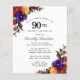 Flores coloridas são entaladas em folhagem verde escura para decorar este convite de aniversário 90.
