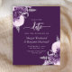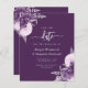 This elegant wedding save the date card features purple and lilac floral bouquets set off with silver faux foil greenery in two corners, on a purple background. The customizable text combines silver gray serif, italic and handwriting fonts. The reverse side features a matching purple and silver floral design.