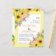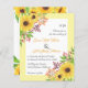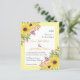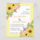 BUDGET amarelo-aquarela girassóis florais convite de casamento com reen floral com código QR para RSVP. Ele mostra buquês de girassóis em tons amarelos nos cantos enquanto seu texto é colocado em um quadro branco com uma borda amarela clara. O dorso inclui as terras florais dos girassóis nas partes superior e inferior e o código QR.