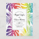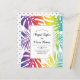 BUDGET O Rainbow colorido de folhas tropicais é convite de casamento lésbico gay com código QR na parte traseira para RSVP online. Ele apresenta um padrão colorido de monstera tropical e folhas de palma em cores do arco-íris e seu texto em um quadro com borda preta. Seus nomes estão na tipografia de script, enquanto o verso inclui o código QR para RSVP on-line.