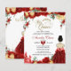 Ruby Red Floral Princesa Mis Quince Quinceañera Convite