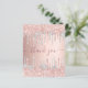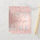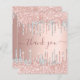 Um cartões de agradecimentos feminino e elegante. Uma cor rosa dourada, cor-de-rosa e metálica de aparência falsa. Com ouro rosa e brilho fino prateado pingando, pintura pingando aparência. Na frente, um grande e escuro, rosa dourado, escrita à mão, colorida, e o texto: Obrigado. Voltar: Personalize e adicione seu nome e nota de agradecimento. O nome é escrito com um moderno estilo escrito à mão com traços. Para manter as hastes, exclua apenas o nome da amostra, deixe os espaços ou emoji na frente e depois do nome. Para aniversários, chás de panela, chás de fraldas, festas de formatura.