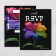 "Feast & Flourish" — a joyful RSVP card from the Technicolor Love collection, designed to delight guests with vibrant style and thoughtful ease. At its heart blooms the signature rainblo lily, a multicolored marvel glowing against a bold black backdrop, symbolizing pride, celebration, and the beauty of shared love.