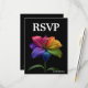 "Soaring Together" is a heartfelt RSVP card from the Technicolor Love collection, designed to honor love in all its radiant forms. At its center blooms the iconic rainblo lily—each petal drenched in vivid color, from fiery reds to serene blues and lush greens, shimmering with dew against a dramatic black backdrop. This flower isn’t just decorative—it’s a symbol of pride, unity, and the beauty of a love that refuses to be anything but true.