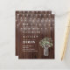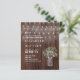 Ponha o tom para a celebração do seu país com estes itens de papelaria de casamento rústicos, com um fundo de madeira quente, luzes brilhantes de cordas e belos jarros de mason. Perfeito para casamentos de celeiros, celebrações ao ar livre, ou cerimônias aconchegantes à noite, esta design rustica cria uma atmosfera acolhedora e romântica. Personalize com seus nomes, detalhes do casamento e informações do evento para artesanato do convite/papelaria perfeito que reflete o seu estilo rústico.