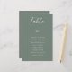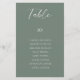 Sage green wedding table number card with guest names seating chart