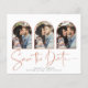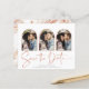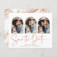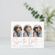 Manuscrito Salve a data Rosa de Cobre Dourado Múltiplo Cartão com fotos em um tipo de letra elegante e que evoca uma sensação romântica manuscrita. Na parte de trás há veias do estilo folha de ouro de rosa da empresa em moda que correm através de mármore clássico. Projetado para usar três de suas fotos favoritas em nossos arcos de vara para personalização adicional. Adicione facilmente seus nomes e datas para um design verdadeiramente personalizado. **O nosso documento sobre o ORÇAMENTO é menor, mais leve e mais delicado, mas ainda é bonito! Não se esqueça dos envelopes!** Se você precisar de ajuda ou itens correspondentes, entre em contato conosco em cedarandstring@gmail.com.