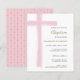 Budget Simple Watercolor Pink Cross Girl Baptism Invitation