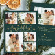 Budget Modern Elegant Green and Gold Script 5-Photo Collage Happy Holidays Script Holiday Card. Celebrate the season with this simple yet elegant holiday card featuring a clean five-photo collage on the front. The design is highlighted with delicate snowflake accents and a beautifully hand-lettered "Happy Holidays" script in gold calligraphy, set against a rich green background for a warm, festive feel.