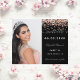 Uma foto Salvar a data de um aniversário de 16 (ou qualquer idade) Doce Na frente: Adicionar uma foto de tamanho vertical. Uma cor preta de fundo, decorada com rosa dourada, poeira brilhante. Personalize e adicione um nome e detalhes.