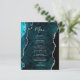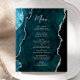 This elegant modern wedding menu features a teal blue watercolor agate background trimmed with faux silver glitter. The customizable text combines silver gray handwriting script and copperplate fonts. The reverse side features a matching teal and silver agate design.