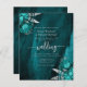 Budget Teal Silver Floral QR Code Wedding Invite