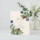 Lindas folhas de Eucalipto, azuis Flores-do-palito, folhagem verde-sábio, cones de pínus nesses itens de casamento no inverno. Parte de uma coleção maior que inclui convites para casamento de orçamento, salvar as datas, RSVPs, obrigado de cartões com fotos, presentes de noiva e festa de casamento e muito mais. Para obter um planejamento GRATUITO detalhado do casamento no inverno, visite weddingdesignchic.com.