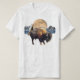 Uma poderosa imagem de Bison (também conhecida como Buffalo na América do Norte) mostra essa qualidade de T-Shirt da extensa gama Zazzle de roupa. Uma vez um animal próspero das planícies e caçado extensivamente pelas planícies indígenas da América do Norte, foram os colonos brancos que eventualmente provocaram sua morte como um animal de livre alcance comumente visto. Faça uma declaração sobre a vida selvagem hoje com esta trabalho de arte linda de Skye Ryan-Evans. 25% dos royalties obtidos são doados aos Defensores da Vida Selvagem em: www.defenders.org