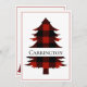 Um cartão de cartões de natal simples e giro com tipografia "Feliz Natal". Buffalo Check Pine Tree dá a este cartão uma aparência confortável e fofa.